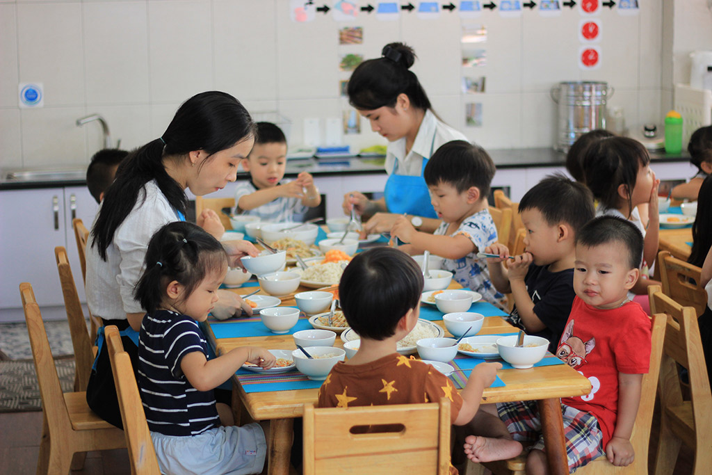 Chúng tôi nhận thức được tầm quan trọng của việc ăn uống vì sức khỏe lâu dài nên nguồn thực phẩm chúng tôi chọn là những thực phẩm an toàn, và từ những nguồn đảm bảo an toàn. Chúng tôi loại bỏ những thực phẩm biến đổi gen (GMO), thức ăn công nghiệp, phụ phẩm công nghiệp ra khỏi thực đơn của trường như: bột ngọt, bột nêm, đường trắng tinh luyện, … Không dùng sữa công thức, chỉ sử dụng sữa hạt với nguồn hạt được lựa chọn kỹ lưỡng do các nhà vườn trồng nhỏ lẻ, không sử dụng đậu nành biến đổi gen, …